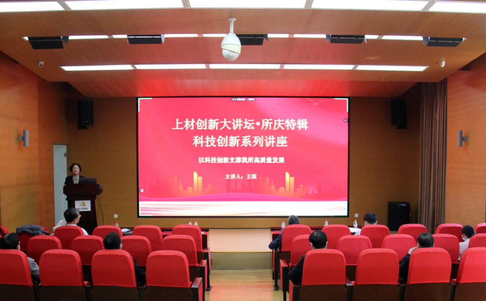 在党的二十大胜利召开之际,2022年10月21日下午,我所通过线上线下相结合的方式举办上材创新大讲坛所庆特别讲座第二讲,由科技质量部主任王滨同志作“以科技创新支撑我所高质量发展”专题报告,全所干部职工约140人参加。