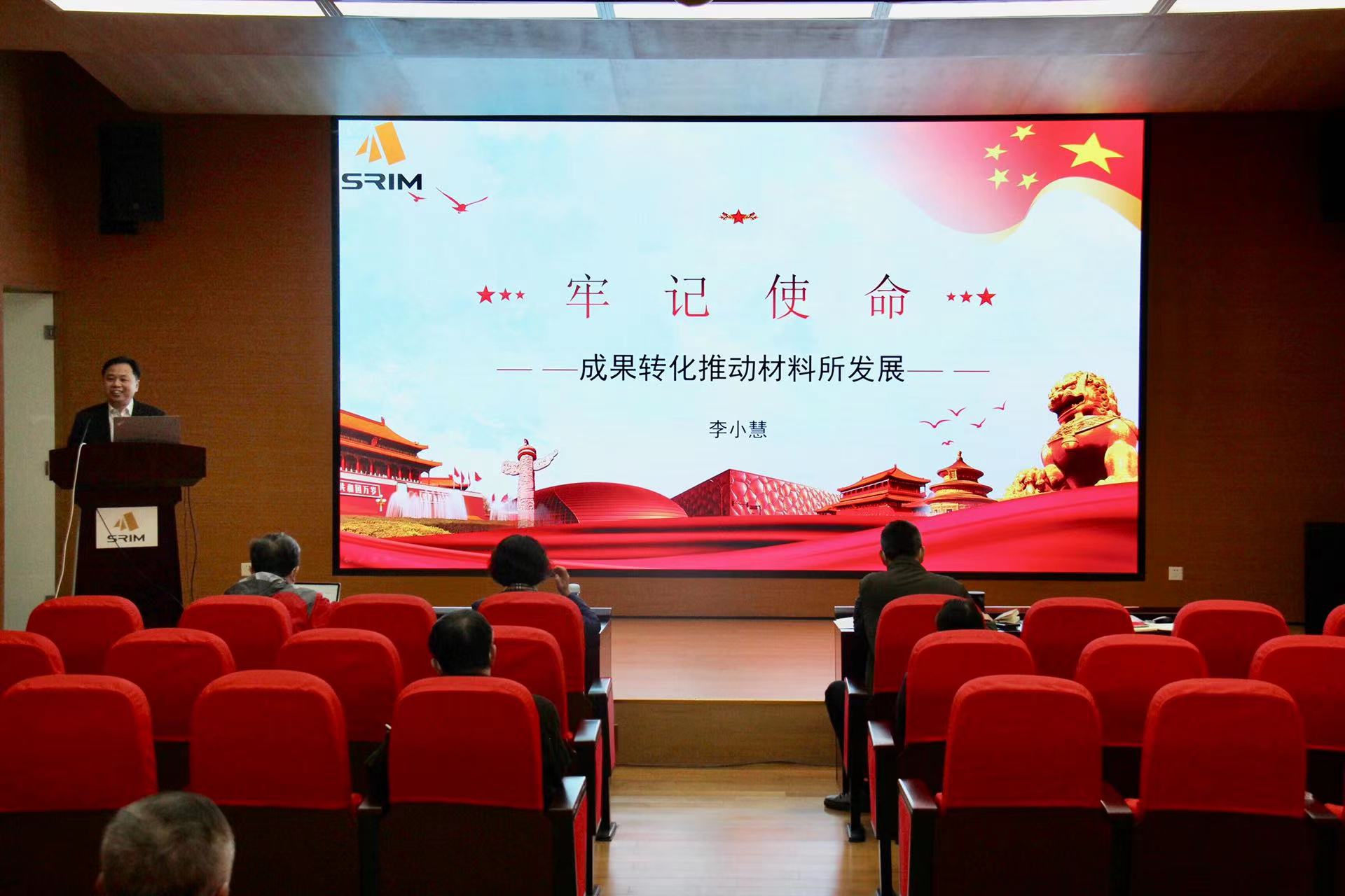 为迎接党的二十大胜利召开、庆祝建所76周年,2022年10月14日下午,我所通过线上线下相结合的方式举办上材创新大讲坛所庆特别讲座,由副所长李小慧同志作“牢记使命,成果转化推动材料所发展”主题报告,全所干部职工约150人参加。