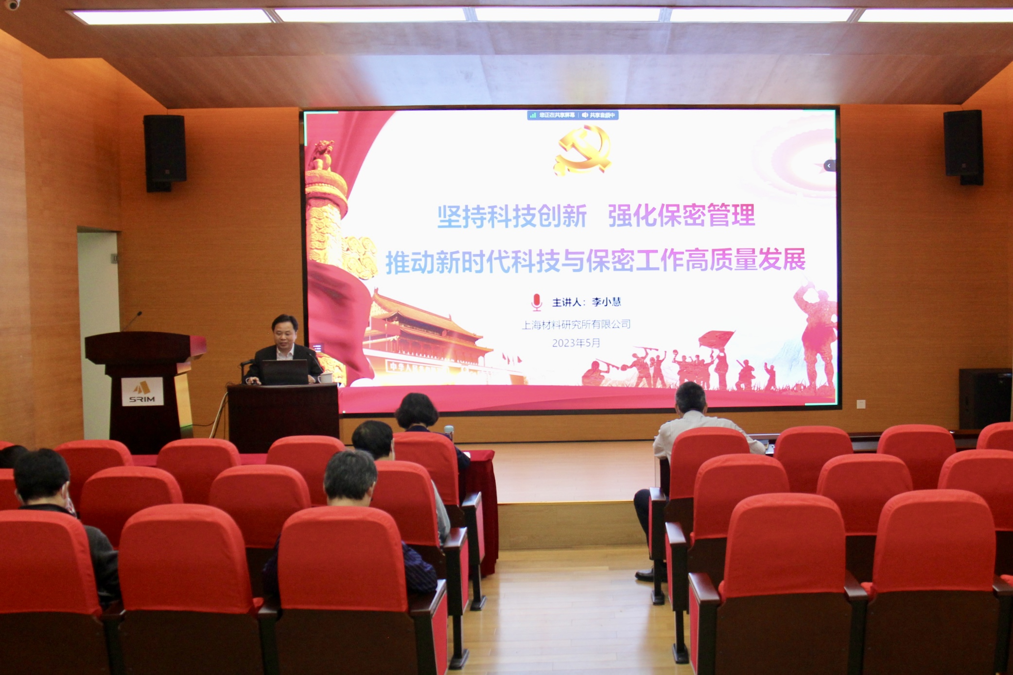 为深入学习贯彻习近平新时代中国特色社会主义思想,根据公司主题教育的整体安排,2023年5月19日,上海材料研究所有限公司副总经理李小慧以《坚持科技创新 强化保密管理 推动新时代科技与保密工作高质量发展》为题讲授主题教育专题党课,公司领导、全体中层干部及独立运行非行政部门负责人、支部书记及高分子及复合材料党支部、减振技术党支部、金属减摩党支部党员约60人参加学习。