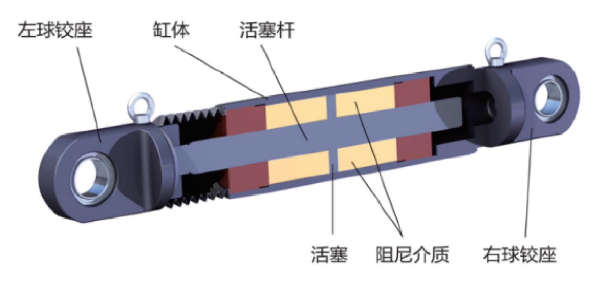 黏滞阻尼器是一种利用流体运动原理制成的阻尼器,主要通过活塞的往复运动带动内部介质的流动,产生阻尼效果,将动能转化为热能,从而实现耗能减震的功能。它广泛应用于高层建筑、桥梁、工业管道设备抗震等领域,特别是在地震、台风多发区,黏滞阻尼器能够有效吸收和消耗地震对结构的冲击能量,大大缓解地震对结构的冲击和破坏。