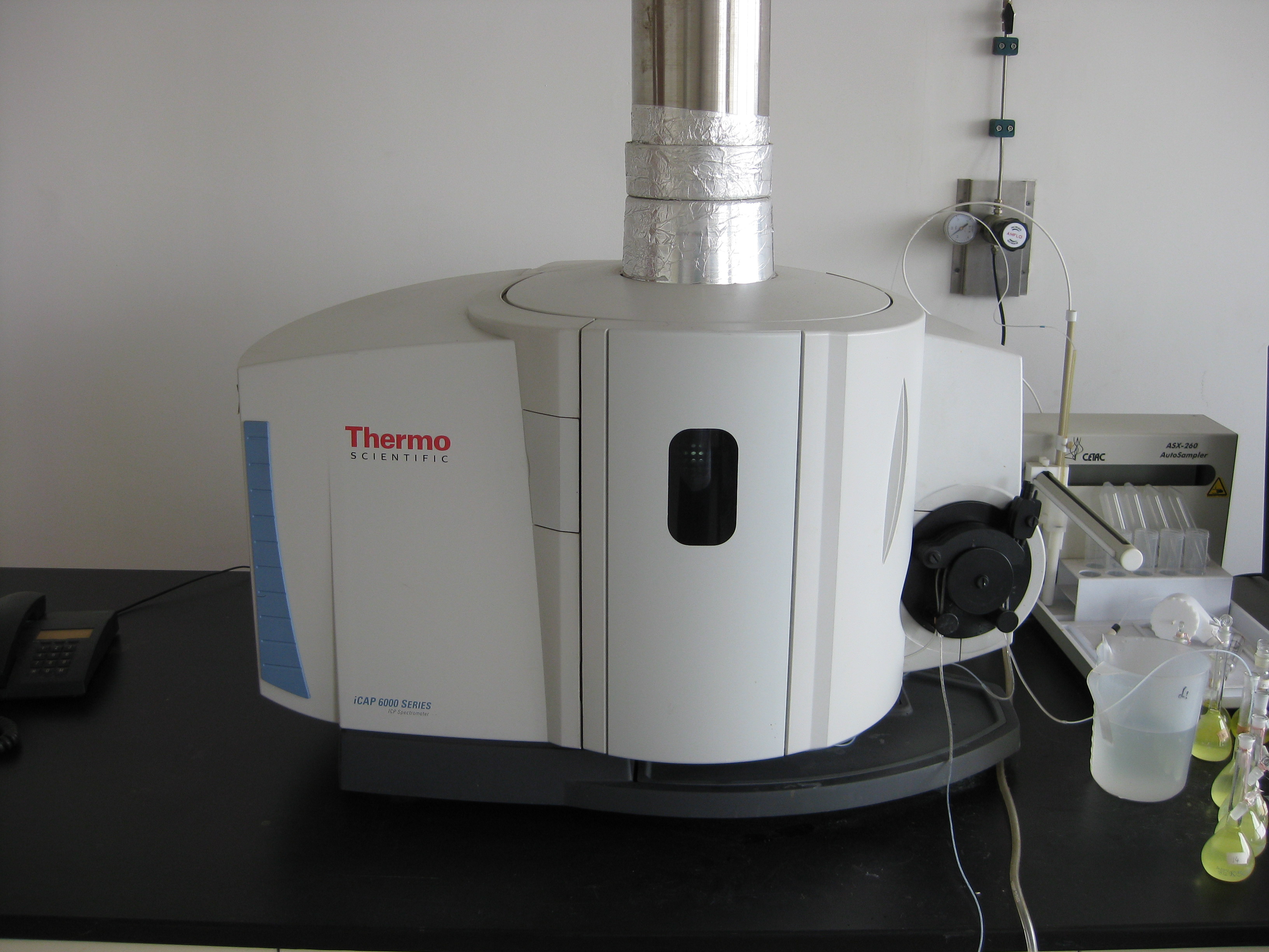 iCAP6300等离子发射光谱仪 首页化学分析iCAP6300等离子发射光谱仪 设备资源 iCAP6300等离子发射光谱仪 参数: 技术指标 元素检出限3σ≤0.005mg/l; 谱线分辨率0.007nm(200nm波长)、0.014nm(300nm波长); 波长示值误差≤±0.05nm; 波长重复性≤±0.01nm。 应用范围 主要进行金属的定性和定量分析